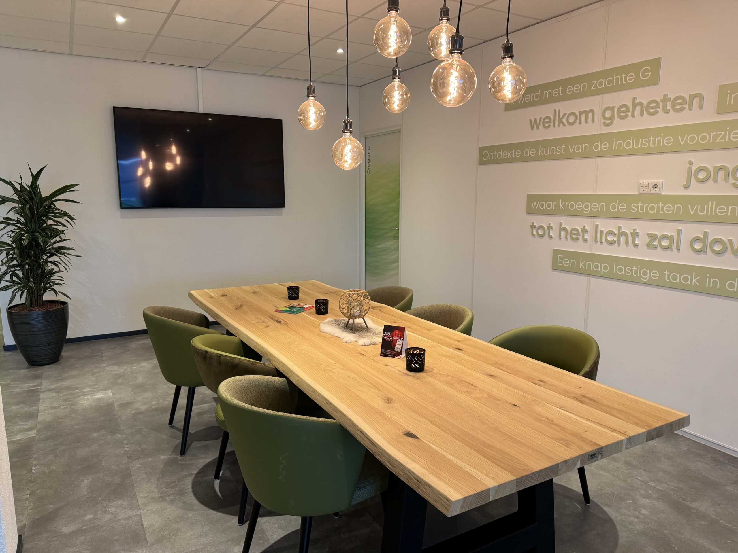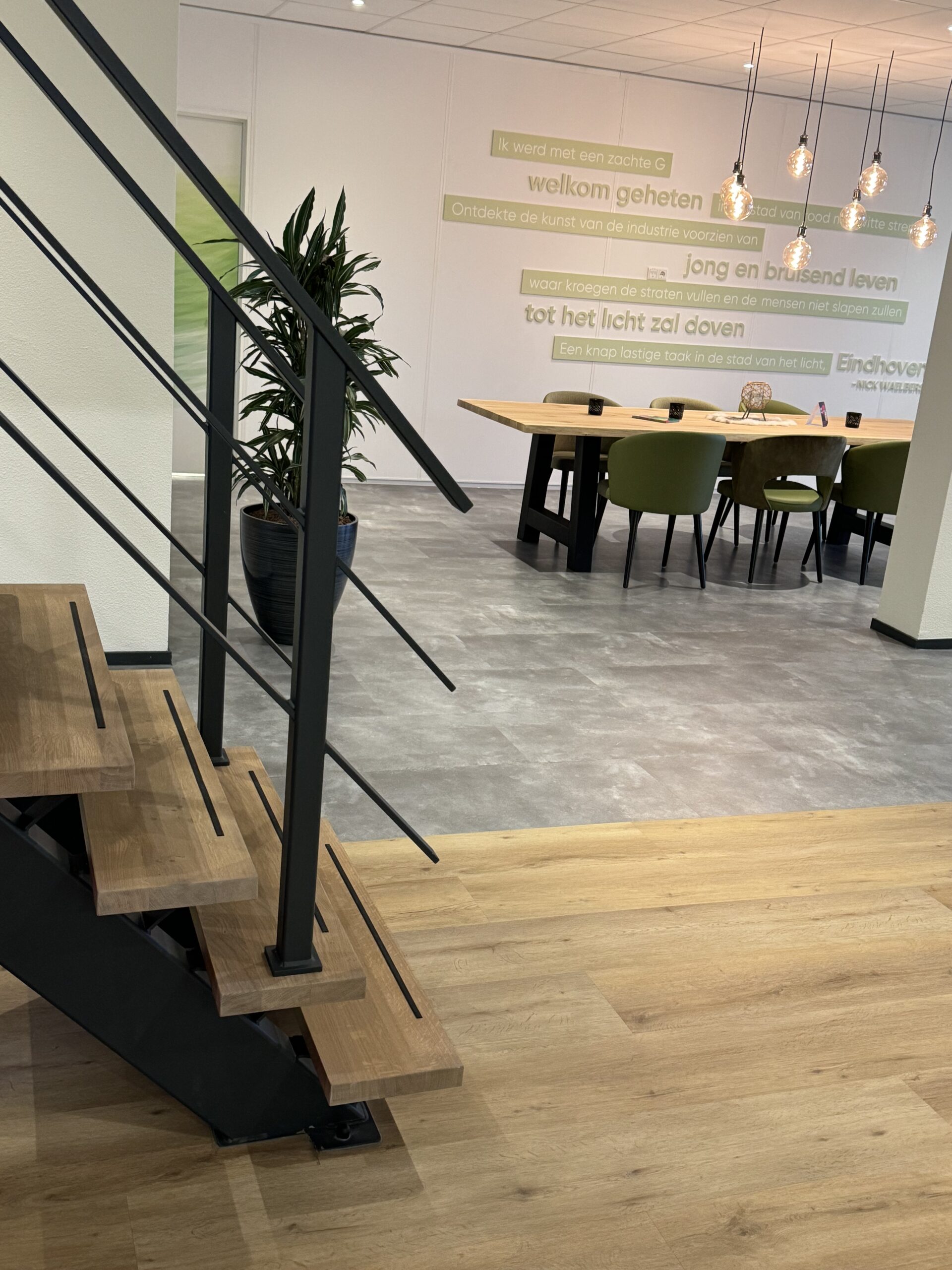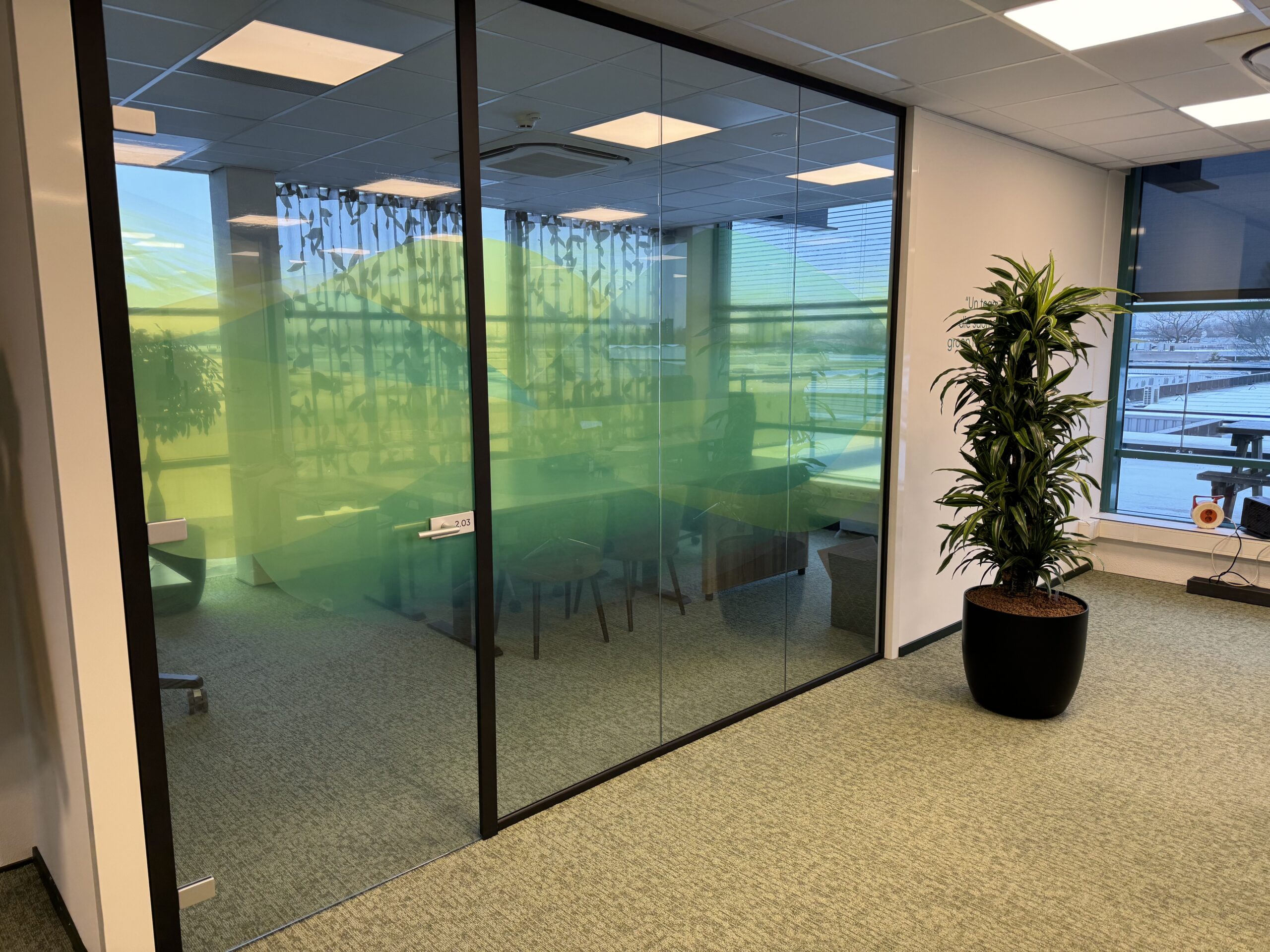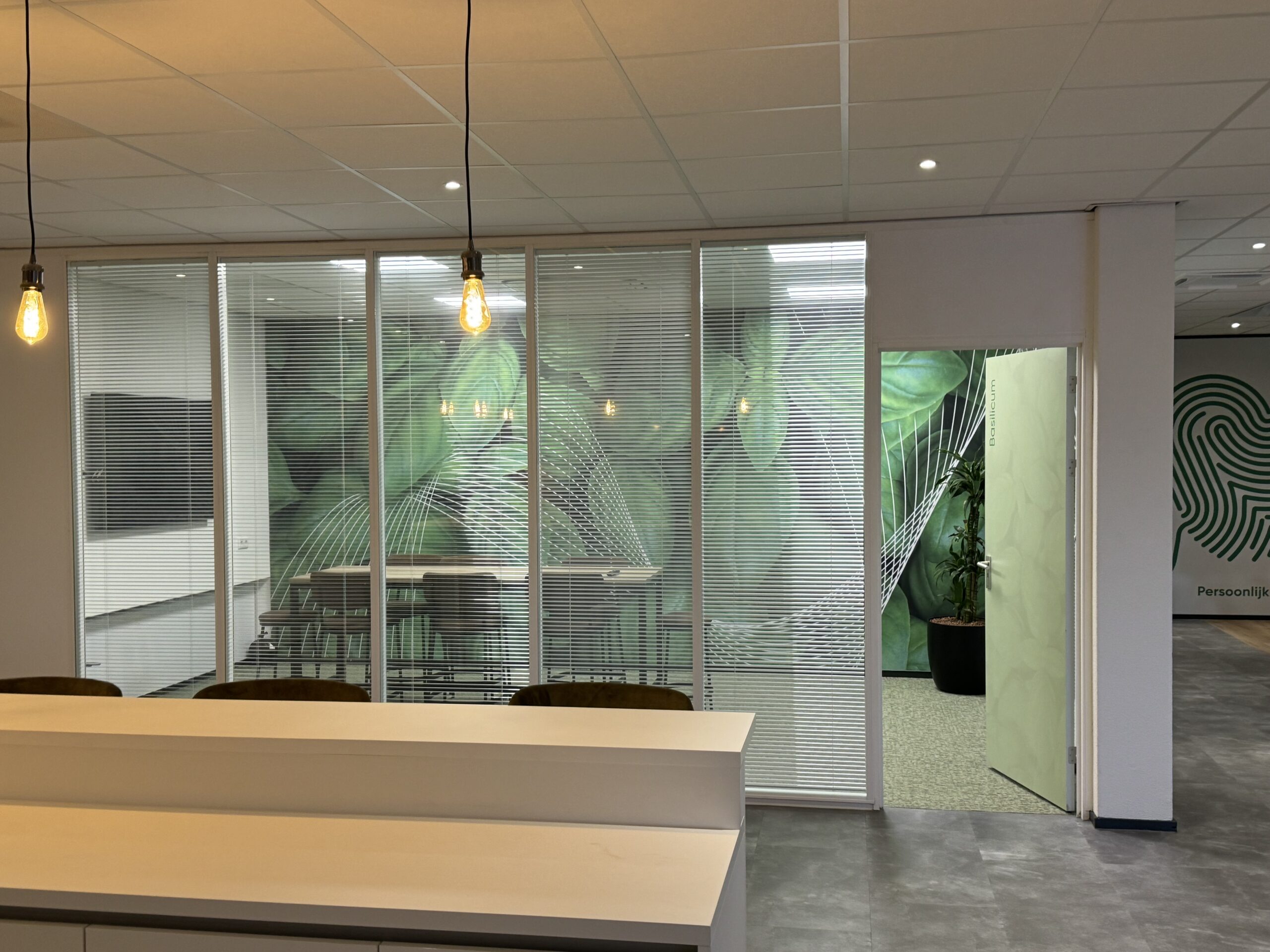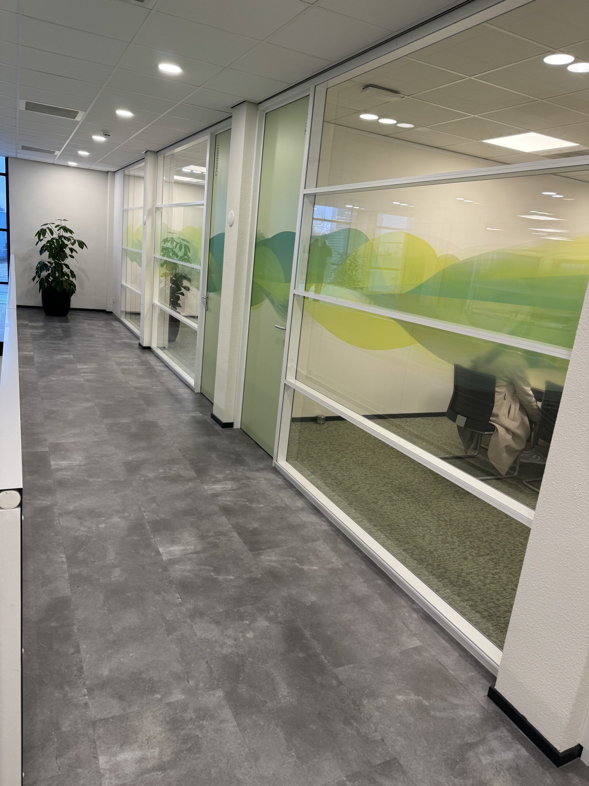 • nieuwe hardglazen wanden antraciet  t.p.v. overleg ruimte : 2 verdiepingen