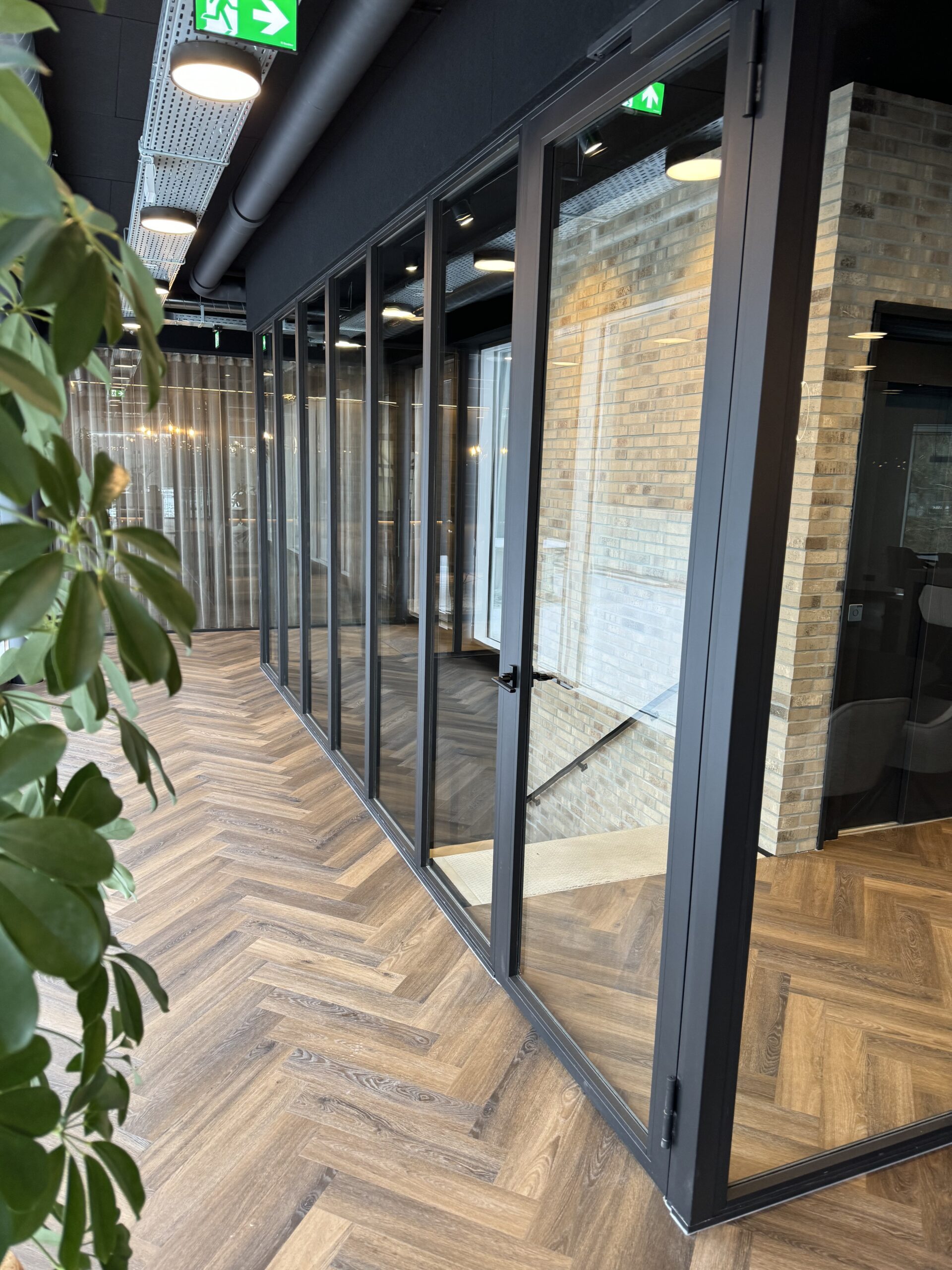 • 150 m2  Brandwerende hardglaswanden 60 min. rondom traphuis